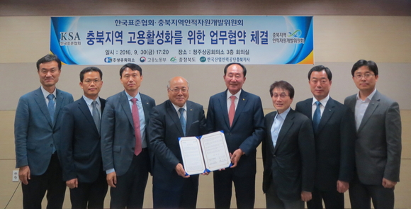 [쿠키뉴스=김진환 기자] 한국표준협회가 지난 30일 청주상공회의소 회의실에서 충북지역인적자원개발위원회와 충북지역 고용활성화와 산업맞춤형 인력양성을 위한 업무협약을 체결했다.