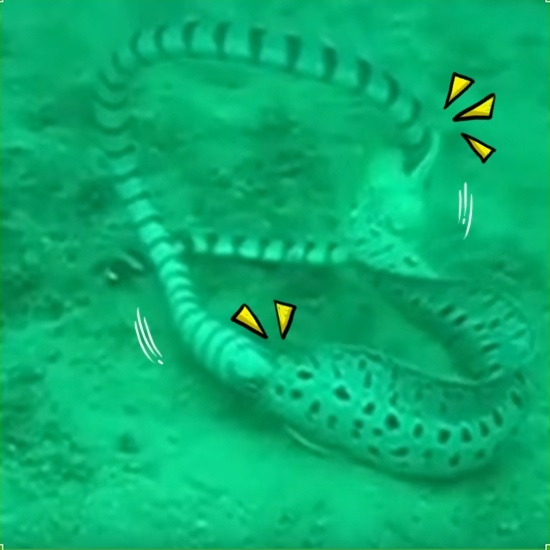 [쿠키뉴스=콘텐츠기획팀] 치사율이 강한 독성을 지니고 있는 바다뱀과 최고 850볼트의 발전력을 갖고 있어 감전사의 위험이 높은 전기뱀장어의 한판 대결 영상이 시선을 끕니다.