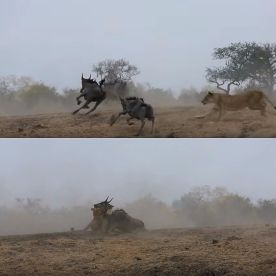 그리고는 곧바로 전력 질주, 화들짝 놀라 줄행랑치는 먹잇감을 단숨에 제압하는 암사자의 사냥실력이 보통이 아니네요. 정힘찬 콘텐츠에디터 [출처=유튜브 112357rj]