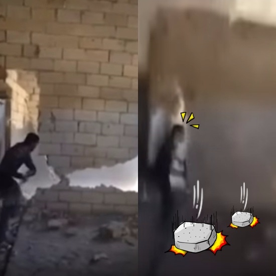 아슬아슬한 상황에서도 아랑곳 않고 계속 해머 질을 하던 노동자, 숨소리가 거칠어질 즈음 마지막 한 방의 해머 질을 가하자 이내 와르르 벽이 무너져 내리면서 노동자를 덮치는데...