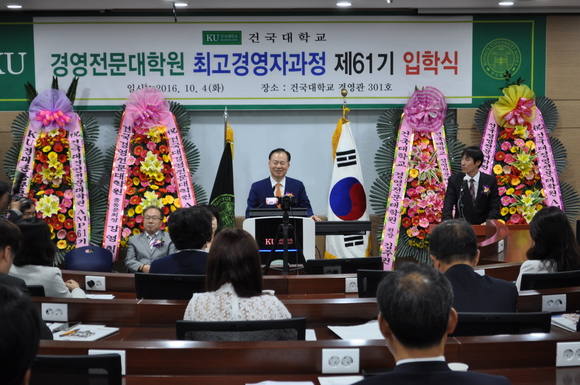 건국대학교 경영전문대학원 최고경영자과정에서는 최신 경영의 성공 포인트와 세계경제의 흐름과 전망, 중소기업체의 생존전략, 글로벌 기업의 경영혁신과 성공사례 등에 대하여 공부함으로써 CEO들이 기업환경의 불확실성에 대처하고 미래에 대한 통찰력을 높일 수 있도록 하고 있다.