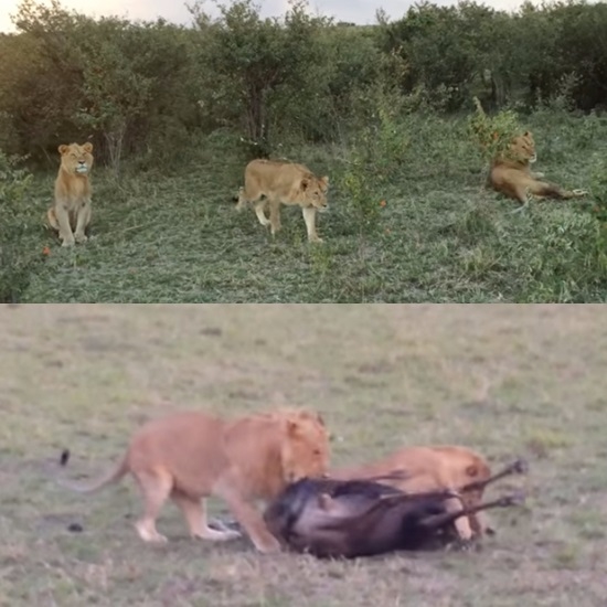 제법 먼 거리임에도 누의 움직임을 잘 포착한 녀석들의 뛰어난 시각, 후각이 돋보이네요.