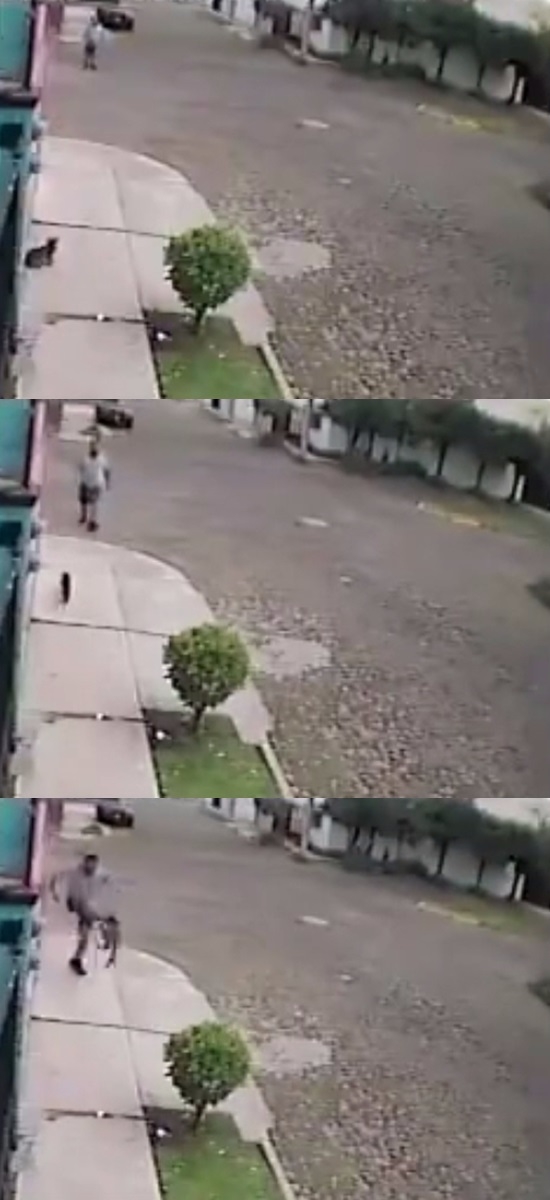 집 밖 길가에 얌전히 앉아있던 고양이, 저 멀리서 문제의 남성이 걸어오자 마치 반기듯이 남성을 향해 점점 다가가는데요.