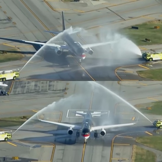 이날 버락 오바마 대통령과 회담차 출발에 앞서 뉴욕의 잭슨 하이츠에 위치한 라구아디아 국제공항에서는 트럼프 당선자의 전용기에 깍듯한 예우를 갖추는 퍼포먼스를 행했습니다. 정힘찬 콘텐츠에디터 [출처=유튜브 ABC News]