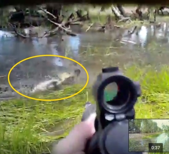 사냥꾼의 바디 캠에 찍힌 영상 속엔 몸집이 제법 큰 악어의 모습이 선명한데요.
