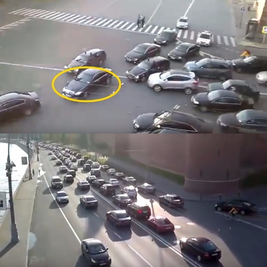 이 같은 푸틴 일행의 얌체 행동에 뿔난 일반 차량 운전자들은 경적을 울려대며 항의 표시를 하는데요.