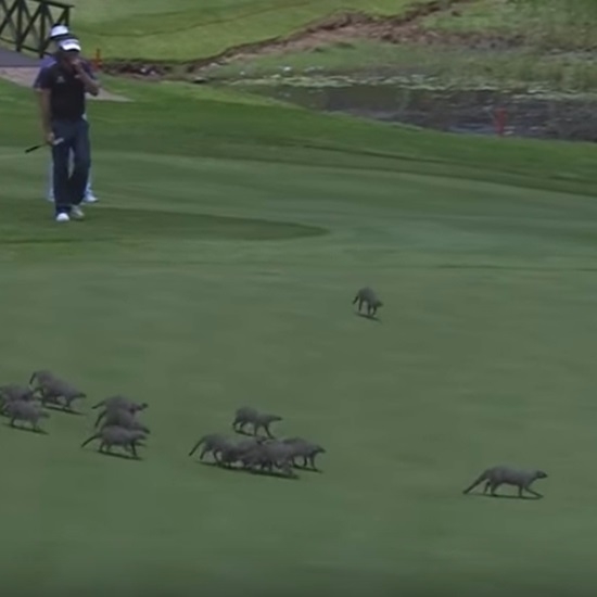 그린 위로 웬 몽구스 떼가 출몰해 경기가 중단됩니다.