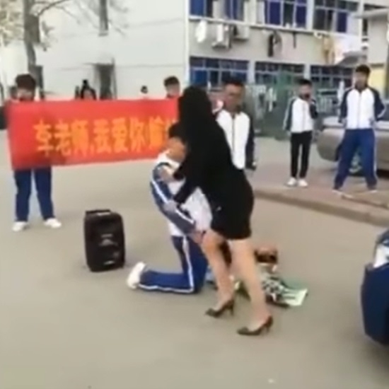 중국 소셜미디어 웨이보에 공개된 영상 속엔 한 중학생이 작심한 듯 그동안 짝사랑해왔던 여선생님에게 공개 청혼을 하는데요.