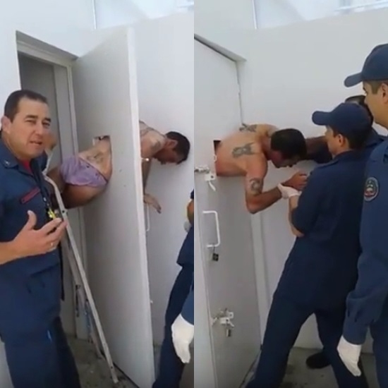 탈출하려다 몸에 꽉 끼어버린 웃픈 신세의 좀도둑을 소방관들이 구조에 나서보지만, 쉽지 않은 상황.