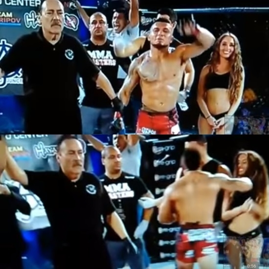 [쿠키뉴스=콘텐츠기획팀] 경기에서 진 분풀이로 아무 죄 없는 링 걸에게 펀치를 날린 파이터가 카메라에 포착됐네요.