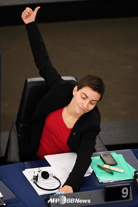 [쿠키뉴스=장윤형 기자] 새로 선출된 녹색당의 스카 켈러 독일 공동 의장은 프랑스 동부 스트라스부르의 유럽 의회 본회의에 참석했다.