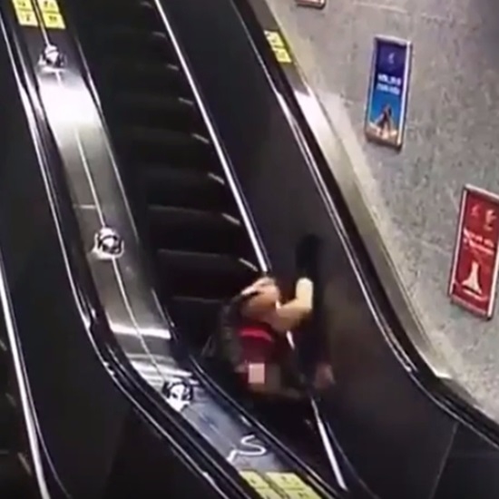 중국의 한 여성이 상향 에스컬레이터에 탑승하자마자 갑자기 뒤쪽으로 무게가 쏠리는데요.