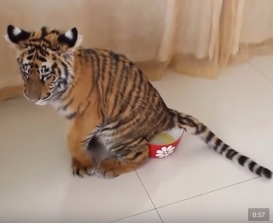 온라인 동영상 사이트 유튜브에 공개된 영상 속 아기 호랑이는 신기하게도 가정에서 애완용으로 키우는 듯 보이는데요.