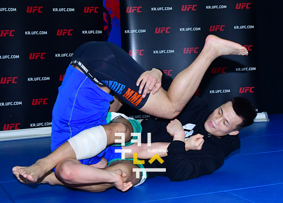 [쿠키뉴스=박태현 기자] 이종격투기 정찬성 선수가 4일 오후 서울 역삼로 코리안좀비 종합격투기 체육관에서 공개훈련을 하고 있다.