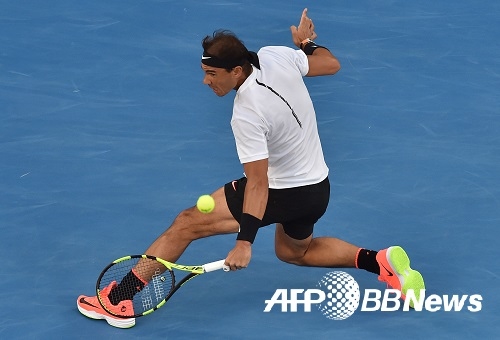 [쿠키뉴스=이훈 기자] 스페인의 라파엘 나달 (Rafael Nadal)이 25일(현지시각) 호주 멜버른에서 열린 호주 오픈 테니스 대회 10 일째 남자 단식 8 강전에서 캐나다의 밀로스 레이 오닉과의 경기에서 리턴하고 있다. hoon@kukinews.com