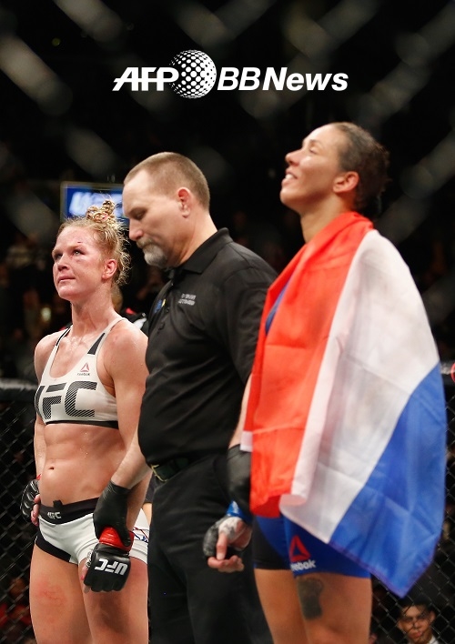 [쿠키뉴스=이훈 기자]  저메인 드란다미(32·네덜란드)가 12일 미국 뉴욕 브루클린의 바클레이즈 센터에서 펼쳐진 UFC 208 메인이벤트 여자 페더급 타이틀매치에서 전 UFC 밴텀급 챔피언 홀리 홈(35·미국)에 판정승을 거뒀다. hoon@kukinews.com