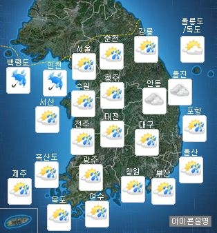 북서쪽에서 다가오는 기압골의 영향을 받아 전국이 흐려져 저녁에는 서울·경기도에서 비가 시작될 전망이다. 밤에는 전국 대부분 지역으로 확대되겠다. 기온이 낮은 일부 중부내륙과 산지에는 눈이 내리는 곳도 있겠다.