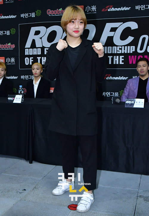 [쿠키뉴스=박태현 기자] 강진희 격투기 선수가 2일 오후 서울 압구정로 ROAD FC 오피셜 압구정짐에서 열린 'ROAD FC 037 XX' 미디어데이에 참석해 포즈를 취하고 있다.