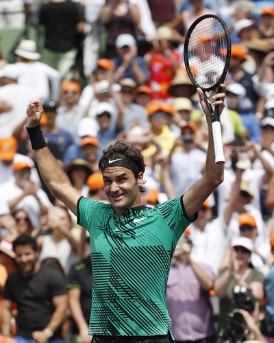 세계 랭킹 6위 페더러는 2일(현지시각) 미국 플로리다주 마이애미에서 열린 남자프로테니스(ATP) 투어 마이애미오픈(총상금 699만 3450달러) 마지막 날 단식 결승에서 세계랭킹 7위 라파엘 나달(스페인)을 2대0(6-3 6-4)로 꺾었다. 페더러가 이 대회 정상에 오른 것은 2006년 이후 11년 만이다.