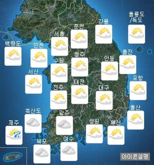 아침 최저기온은 8∼17도, 낮 최고기온은 18∼28도다. 전날과 비슷한 초여름 날씨가 이어지겠다. 기상청은 "큰 일교차를 보건이겠으니 건강관리에 유의해야 한다"고 당부했다.