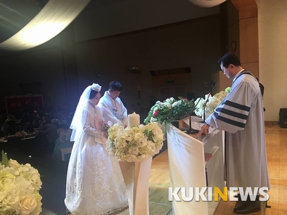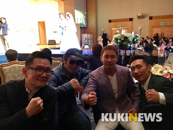 [쿠키뉴스=이다니엘 기자] ROAD FC 라이트급 챔피언 권아솔은 22일 오후 12시30분 목포 현대호텔 컨벤션홀에서 백년가약을 맺었다. 신부는 일반인 여성으로 오랜 열애 끝에 부부의 연을 맺게 됏다. 이날 결혼식에는 ROAD FC 정문홍 대표를 비롯해 박상민 부대표, 이승윤, 윤형빈, 김보성 등이 자리해 의미를 더했다.