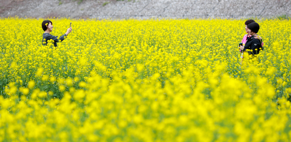 올해 유채꽃은 예년에 비해 다소 가녀린 모습이지만 뒤덮은 샛노란 유채꽃의 물결은 그야말로 장관을 연출하고 있다.