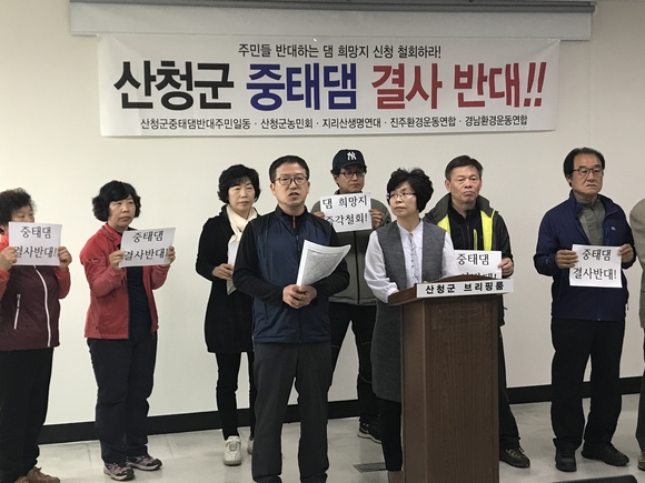 이들은 “산청군의 신규 댐 계획은 ‘16개소 용수확보댐’에서 ‘5~7개소 홍수조절댐’을 거쳐 지금은 ‘중태 홍수조절댐’으로 귀결됐다. 중태댐 계획이 얼마나 억지로 만들어진 것인지 알 수 있다”며 댐 건설 계획 철회를 요구했다.