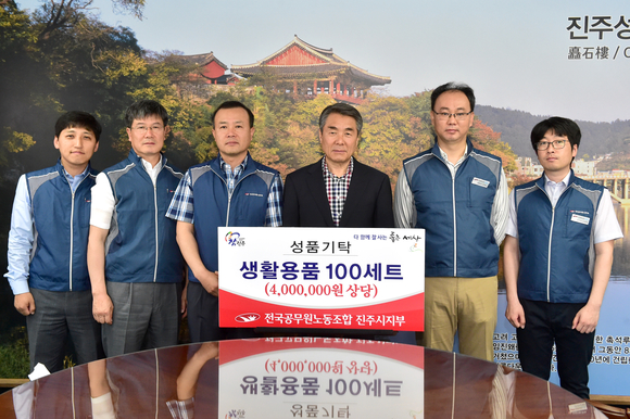 [쿠키뉴스 진주=이영호 기자] 전국공무원노동조합 경남지역본부 진주시지부(지부장 윤연철)가 저소득층을 위해 생활용품을 기부했다.