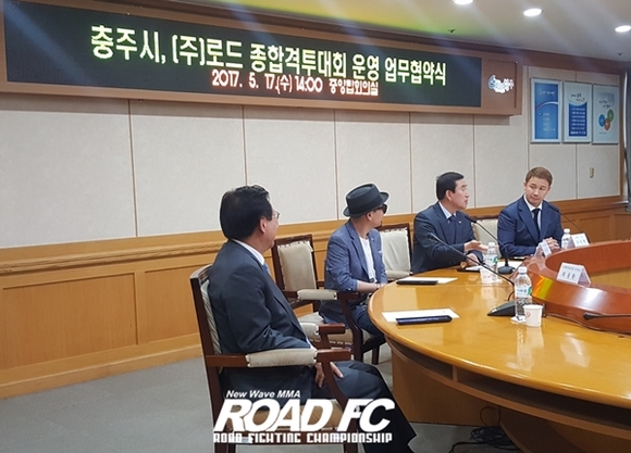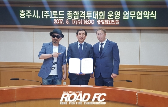 ROAD FC(대표 정문홍)는 17일 ‘무술의 도시’ 충청북도 충주시와 ROAD FC 대회 개최를 위한 업무 협약을 체결했다.