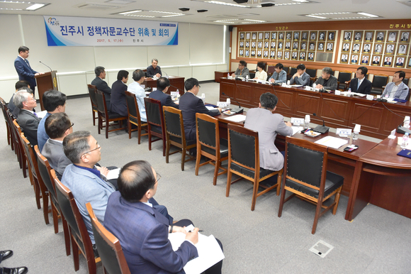 시는 17일 시청 상황실에서 창의적인 시책개발과 시정 자문기능을 활성화하기 위해 2017년도 정책자문교수단 위촉식과 함께 정기회의를 열었다.