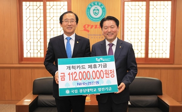 경상대지점은 이날 2017년도 농협개척카드 제휴기금 1억 1200만 원을 이상경 총장에게 전달했다.