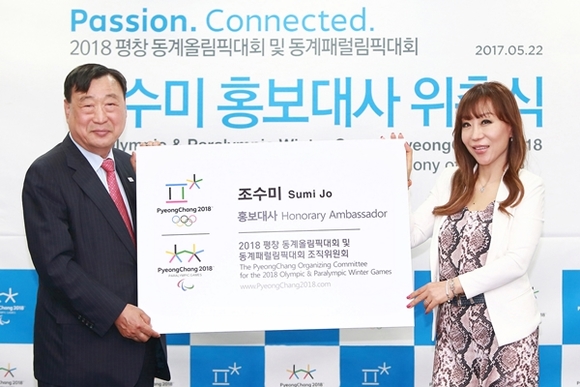 2018 평창 동계올림픽대회 및 동계패럴림픽대회 조직위원회(위원장 이희범)는 22일 “‘신이 내린 목소리’로 평가되며 세계적인 성악가로 활동 중인 조수미를 이날 오전 서울 프레스센터 외신지원센터에서 평창올림픽 홍보대사로 위촉했다”고 밝혔다.