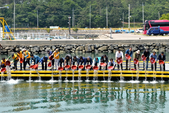참석자들은 수산자원 육성을 위해 인근 해안에서 문치 가자미와 넙치, 돌돔, 볼락 등 4종, 4만미의 치어를 방류했다.