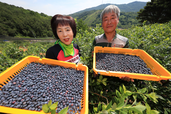 산청군 단성면 백운마을 ‘산청블루베리농장’을 운영하는 허성회(60)씨 부부는 지난 30일 올해 처음으로 블루베리를 수확했다.