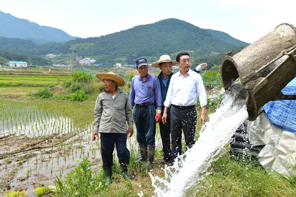작업에는 레미콘 차량과 농협의 급수차량 등 장비가 동원됐으며, 총 300여 톤의 농업용수를 갈라진 논에 공급했다.