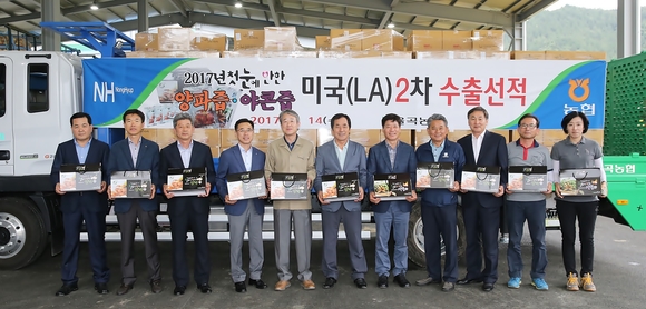 합천군과 율곡농협은 지난 13일 율곡농협 산지유통센터에서 양파즙과 야콘즙 2차, 3차 동시 미국 수출 선적식을 열었다.