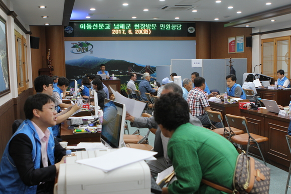 [쿠키뉴스 남해=이영호 기자] 경남 남해군이 지난 20일 군청대회의실에서 국민권익위원회 주관 이동신문고를 운영했다.