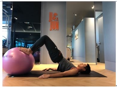 이러한 허리 통증을 줄일 수 있는 간단한 짐볼 운동을 소개한다. 필라테스 동작 중 기본이 되는 Hip Roll이라는 동작이다. 힙롤 동작을 실시할 경우 척추기립근, 외복사근, 복직근, 대둔근, 대퇴이두근, 대퇴사두근을 강화할 수 있다. 덧붙여 짐볼 위에서 실시하게 되면 흔들림을 잡기 위해 코어 근육을 더욱 자극하게 되고, 대퇴사두보다 대퇴이두의 사용에 조금 더 집중할 수 있게 된다.