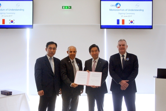 양 협회는 21일(현지 시간) 프랑스 르부르제 공항에서 개최 중인 파리 국제에어쇼에서 ‘항공우주산업 기술협력을 위한 양해각서(MOU)’를 체결했다.