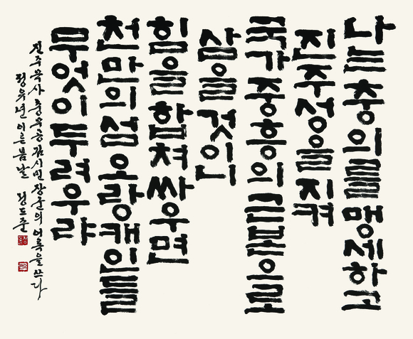 경북궁의 흥례문과 창덕궁 주요 건물 현판, 진주성의 공북문과 400년 만에 귀환한 울산 태화루의 현판 휘호를 쓰는 등 이성자 화백과 더불어 진주가 낳은, 진주를 대표하는 예술인으로서 진주시민들에게 긍지와 자부심을 안겨 주고 있다.