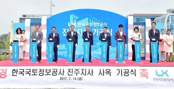 [쿠키뉴스 진주=이영호 기자] 한국국토정보공사(LX, 구 대한지적공사) 경남지역본부가 14일 진주시 충무공동에서 진주지사 사옥 신축 공사 착공식을 열었다.