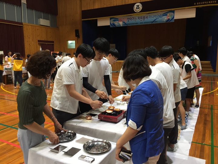‘찾아가는 자원봉사 미니박람회’는 19일 합천고등학교 학생 170명을 대상으로 자원봉사에 대한 이해교육, 자원봉사 관련정보를 제공하는 홍보부스 운영과 천연 아로마 향수 만들기, 달고나 만들기 등 다양한 체험부스로 운영됐다.