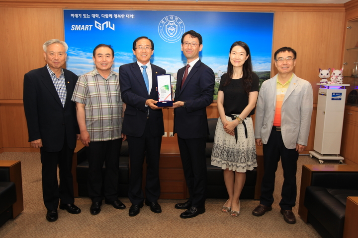로이터는 20일 오후 경상대 대학본부 총장실에서 이상경 총장 등 본부보직자와 클래리베이트 애널리틱스 임원인 김진우 지사장, 박기남 부장이 참석한 가운데 최고혁신대학 선정 기념패 증정식을 개최했다.