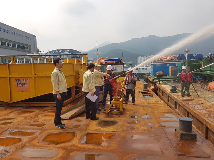 [쿠키뉴스 통영=이영호 기자] 남해안의 여름 불청객 적조 발생 시기가 다가옴에 따라 경남 통영시가 적조대비 사전 준비상황을 점검했다.