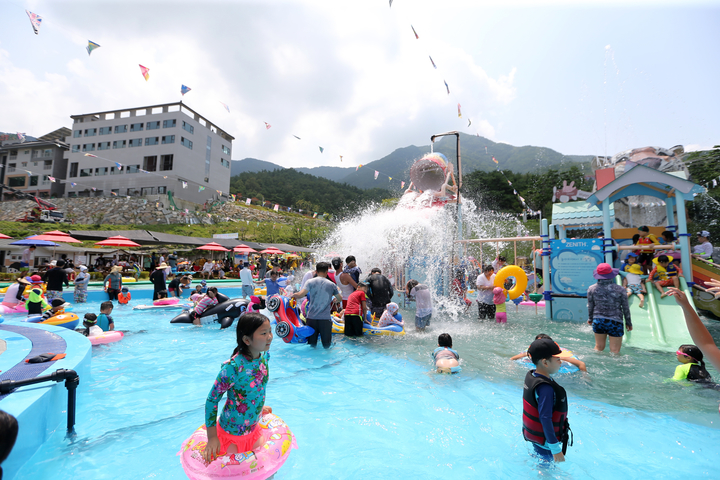 [쿠키뉴스 산청=이영호 기자] 본격적인 휴가철을 맞아 경남 산청군 동의보감촌 숲속수영장이 가족단위 관광객들의 인기를 얻고 있다.