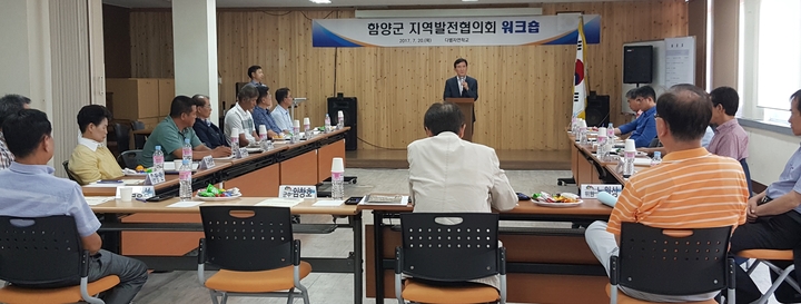 임창호 함양군수와 지역발전협의회 회원 등 20여명이 참석한 가운데 열린 이날 워크숍은 정책역량강화를 위한 농촌개발과 발전방향에 대한 과제발표, 정책 제안 등으로 진행됐다.