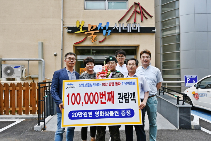 26일 오전 입장한 10만 번째 관객 영광의 주인공은 남해대대(육군8962부대)에 복무 중인 윤영창 하사다. 윤 하사는 20만 원권 영화상품권을 기념 선물로 받았다.