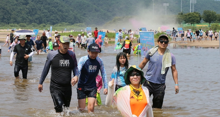 수중마라톤대회를 대신해 작년에 처음 시도한 ‘황강패밀리 컬러레이스’는 옥수수 전분으로 만든 인체에 무해한 천연 컬러파우더를 맞으며 가족과 함께 황강 은빛 모래사장을 달린다.
