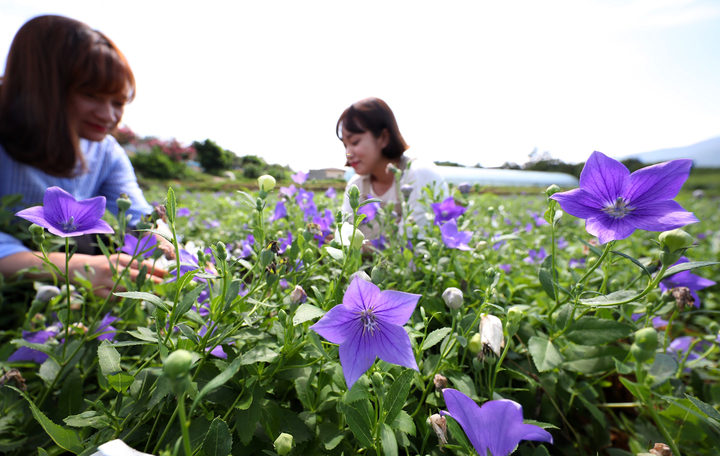 [쿠키뉴스 산청=이영호 기자] 8월의 첫 날, 경남 산청군 산청약초재배단지에서 재배 중인 도라지꽃이 고운 보랏빛을 뽐내고 있다.