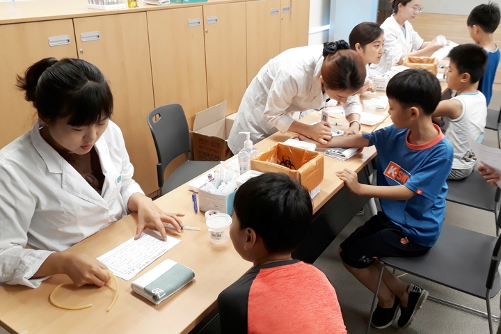 [쿠키뉴스 창원=이영호 기자] 경상대학교병원이 지난달 28일 창원경상대학교병원 4층 이정자홀에서 창원지역아동센터 아동을 초청해 무료 건강검진을 했다.